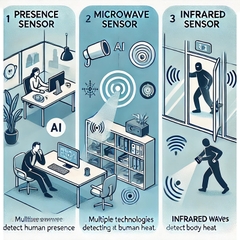 Cảm biến vi sóng là một công nghệ hiện đại sử dụng sóng vô tuyến để phát hiện chuyển động trong không gian. Chúng hoạt động bằng cách phát ra sóng vi sóng và nhận lại sóng phản xạ từ các vật thể, từ đó xác định được sự hiện diện của người hay vật trong khu vực quan sát.